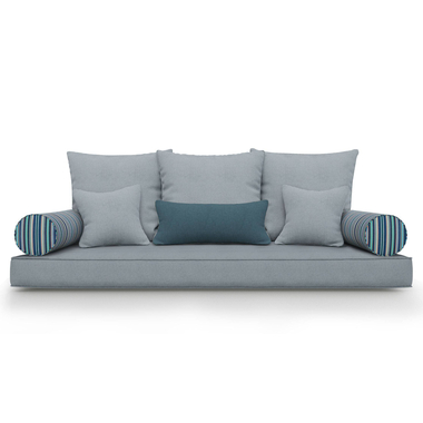 Collection #40 is based around two options for Sunbrella fabrics as a base. The base fabric is used on the bed swing cushion and back pillows. The base fabric options that you can choose from are Cast Breeze or Blend Mist. We have carefully hand-selected fabrics that coordinate well with this bed swing collection. The accent pillow fabrics we recommend are Adaptation Apricot, Cultivate Breeze, Blend Lagoon. We have given you the option of mixing and matching the fabrics of your choice. If a different fabric is wanted on this bed swing pillow collection please specify in the notes section. You may also build a custom cushion order from scratch by visiting:
